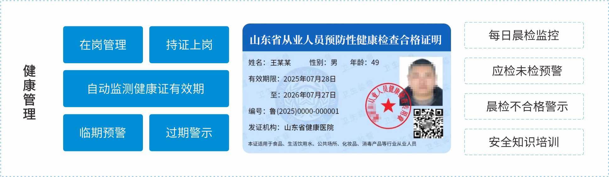 智能晨检:通过智能化手段强化后厨人员健康监测与行为规范,提升食品安全管理效率与规范化水平。