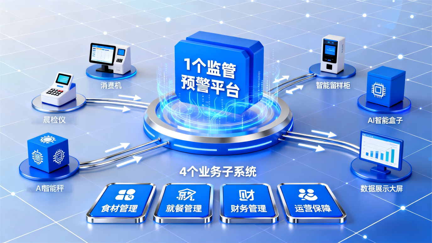 1个监管预警平台:具备全局把控能力,可实现实时预警,为校园餐安全防线筑牢坚实根基;