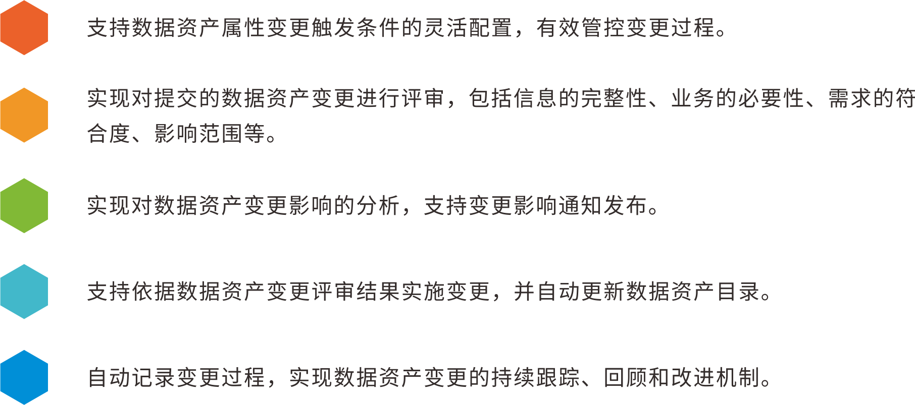 当数据资产管理活动或业务需求变化引起数据资产的价值发生改变时,通过变更控制流程确保变更活动有序实施,并及时更新数据资产目录,确保数据资产目录信息与实际情况保持一致。