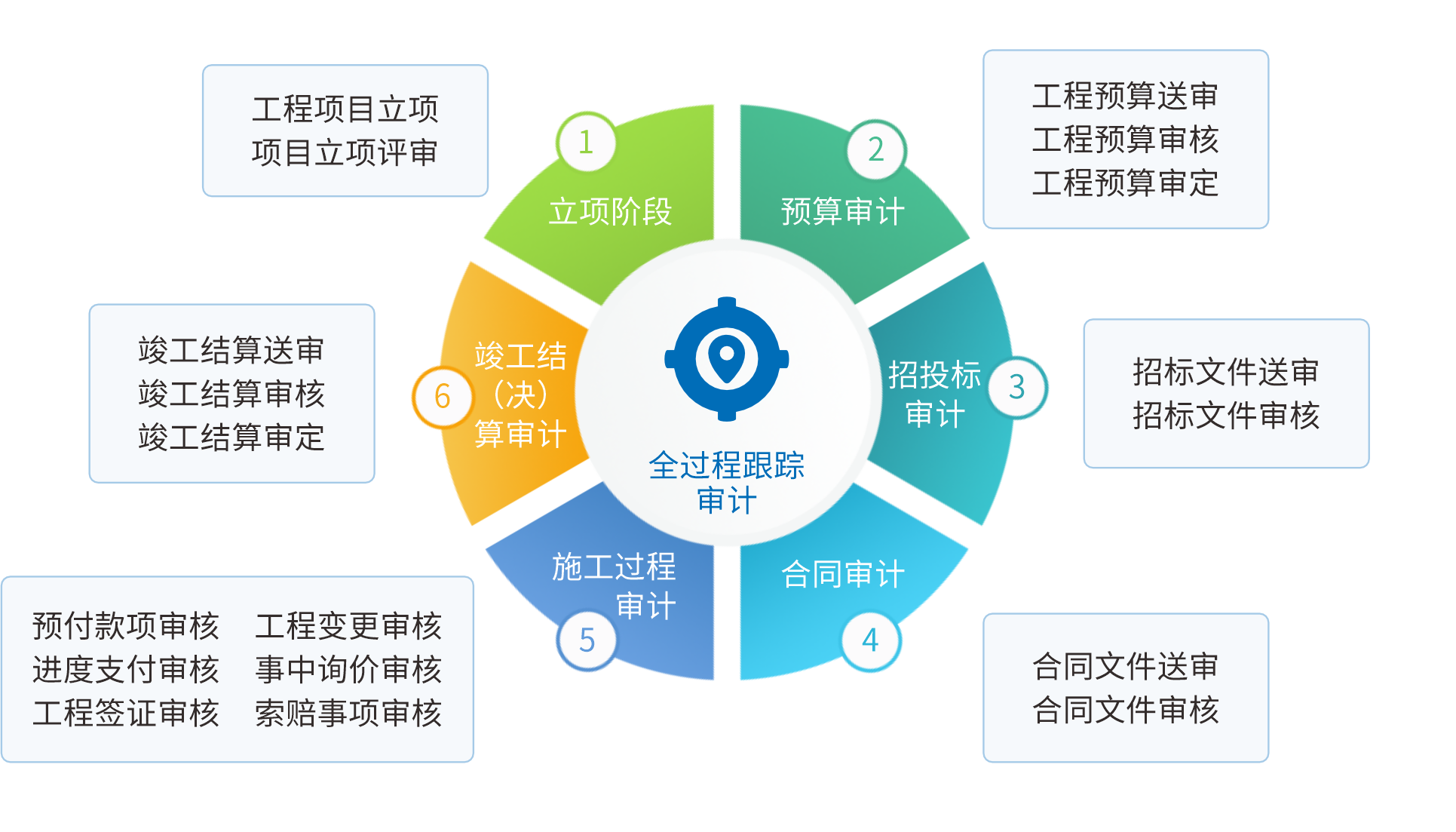 整合第三方资源和智能化工具(如工程管理机器人的进度和质量监控),可即时了解工程项目的进度,实时掌握项目运营状况,及时发现和解决问题。实现从工程送审到工程审定的全流程审计管理,对招标控制价审核、招标文件审核、合同文本审核、工程变更、签证审计、工程进度款等审计进度进行跟踪管理。