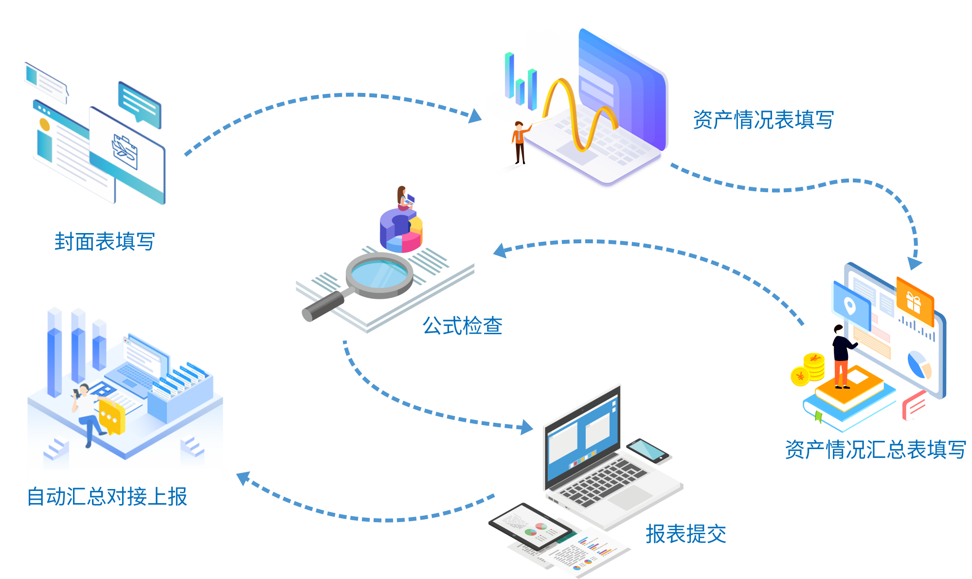 按照财政与教育主管部门的统一部署要求,基于中小学应用环境,内置行政事业性国有资产年度报告(即“资产年报”)模块,各中小学校可在线填报资产年报,在线联系客服人员提供技术支持。各级教育主管部门可在线跟踪单位上报进度,在线审核、汇总、上报。
