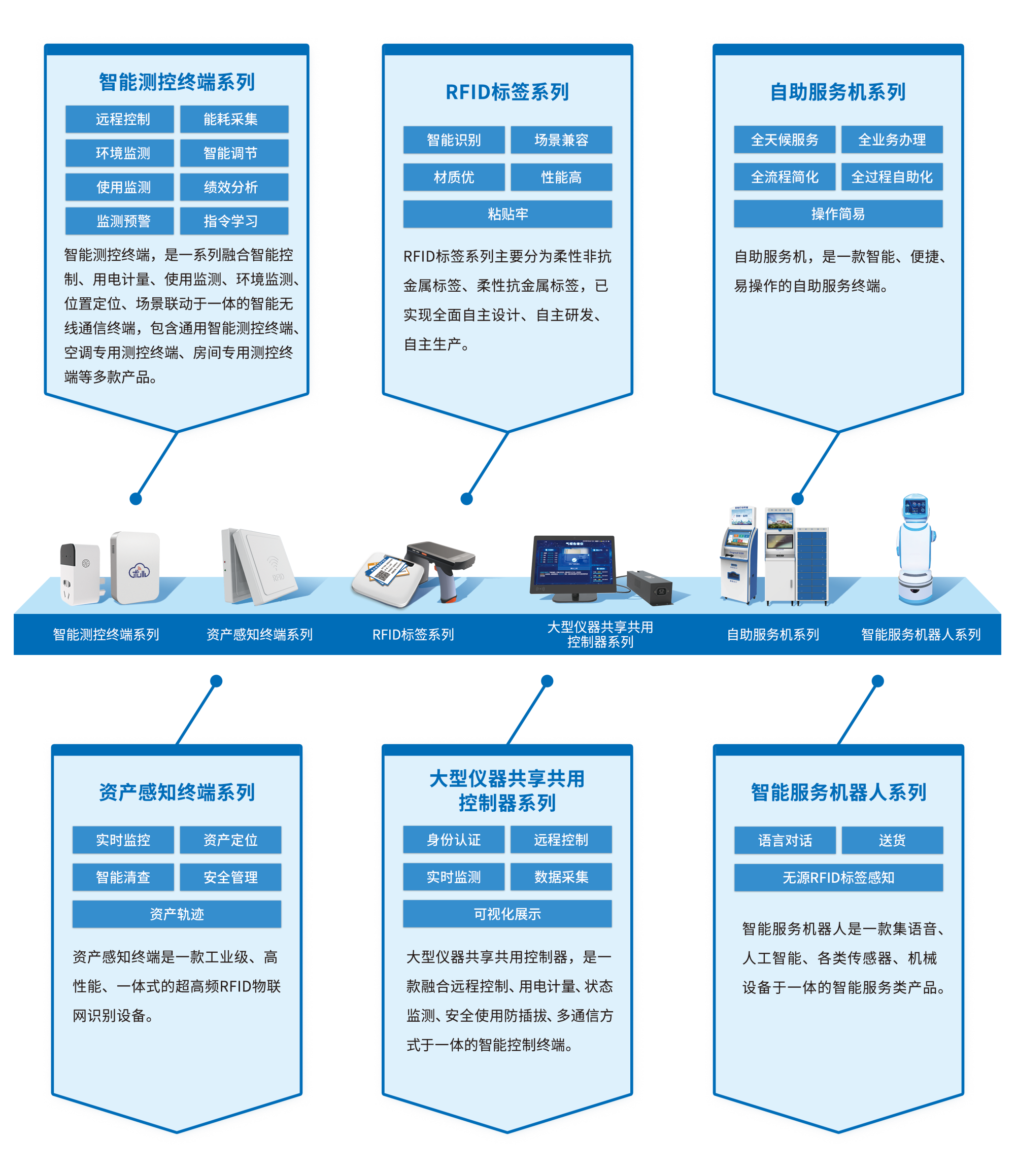 以“物联网 资产管理”为创新理念,充分运用物联网技术在资产管理方面特具的识别、定位、跟踪、监控与管理等优势,配合射频识别、通信、边缘计算等技术,自主设计研发资产管理专用物联网终端与设备,充分赋予资产生命力和主动性,使得资产具备感知、计量、信息交互、自我控制等能力,从而具备与数字世界感知和交互的能力。